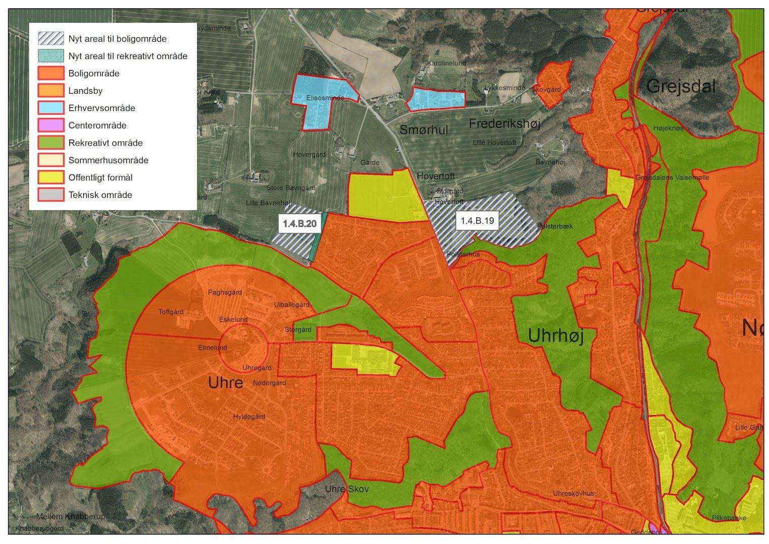 Der udlægges to nye arealer til boliger. Områderne ligger på Uhrhøj, som udgør det nordvestlige højdedrag af Vejle by. Uhrhøj ligger i bydelen Hover/Grejsdalen, som pr. 1. januar 2020 havde et befolkningstal på 7660. Bydelen er de sidste 5 år vokset med ca. 450 personer. I 2005 blev der udarbejdet en helhedsplan for Planetbyen som et nyt byudviklingsområde omkring landsbyen Uhre, og det er især udbygningen efter denne plan, der har fået bydelen til at vokse. Sidste etape af helhedsplanen for Planetbyen bliver udbudt til salg i 2021, og på grund af den hidtidige udbygningstakt forventes grundene at være solgt inden for kort tid, og der forventes fortsat efterspørgsel af nye boliger i bydelen.
