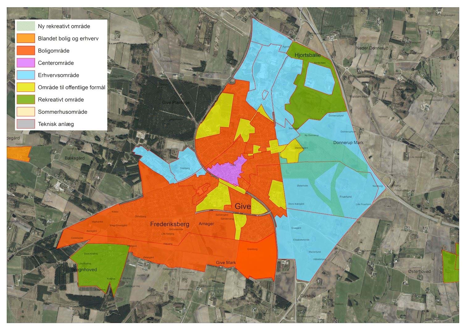 Vejle Kommune har en rummelighed af erhvervsarealer, der er større end de næste 12 års behov. Derfor udtages der erhvervsarealer ved Give, der svarer til de nye arealudlæg til boliger og erhvervsarealet i Vejle Nord.