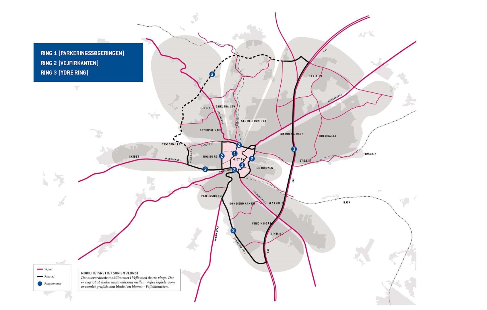 Figur - Mobilitetsblomsten der viser ringvejssystem i Vejle by