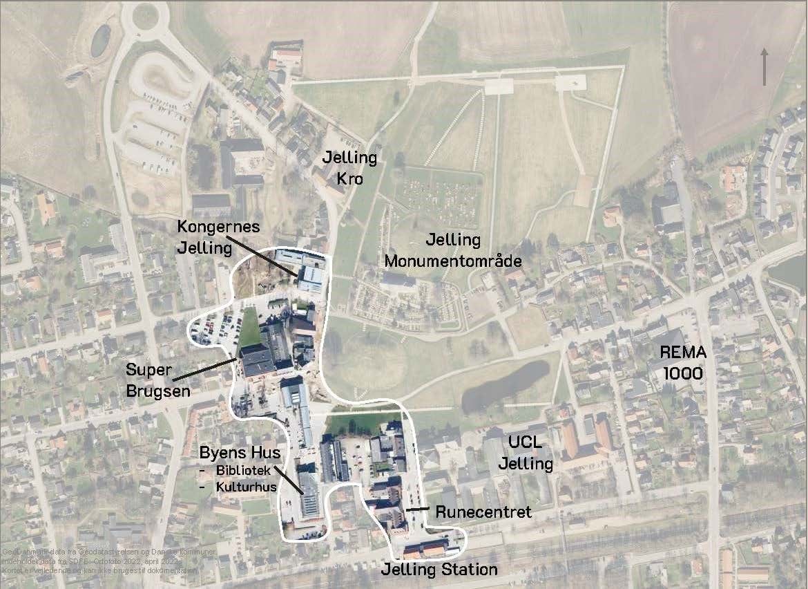 Jelling er en by i vækst. Nye udstykninger tiltrækker flere indbyggere. Og en ny formidling af verdensarven har mangedoblet turiststrømmen. Det er let at komme til/fra Jelling med tog og bus, og Billund Airport kan nås i bil på ca. ½ time. Hærvej, cykel- og vandreruter løber gennem Jelling. Byens udviklingspotentiale ligger bl.a. i at styrke de fysiske sammenhænge - f.eks. mellem handelsgaderne, på tværs af jernbanen samt i cykelforbindelserne til de nærmeste byer. Vi vil skabe en by, der inviterer til leg og bevægelse. Det skal være nemt at finde rundt og trygt at færdes i og omkring fremtidens Jelling - og grøn mobilitet skal være et nemt valg.