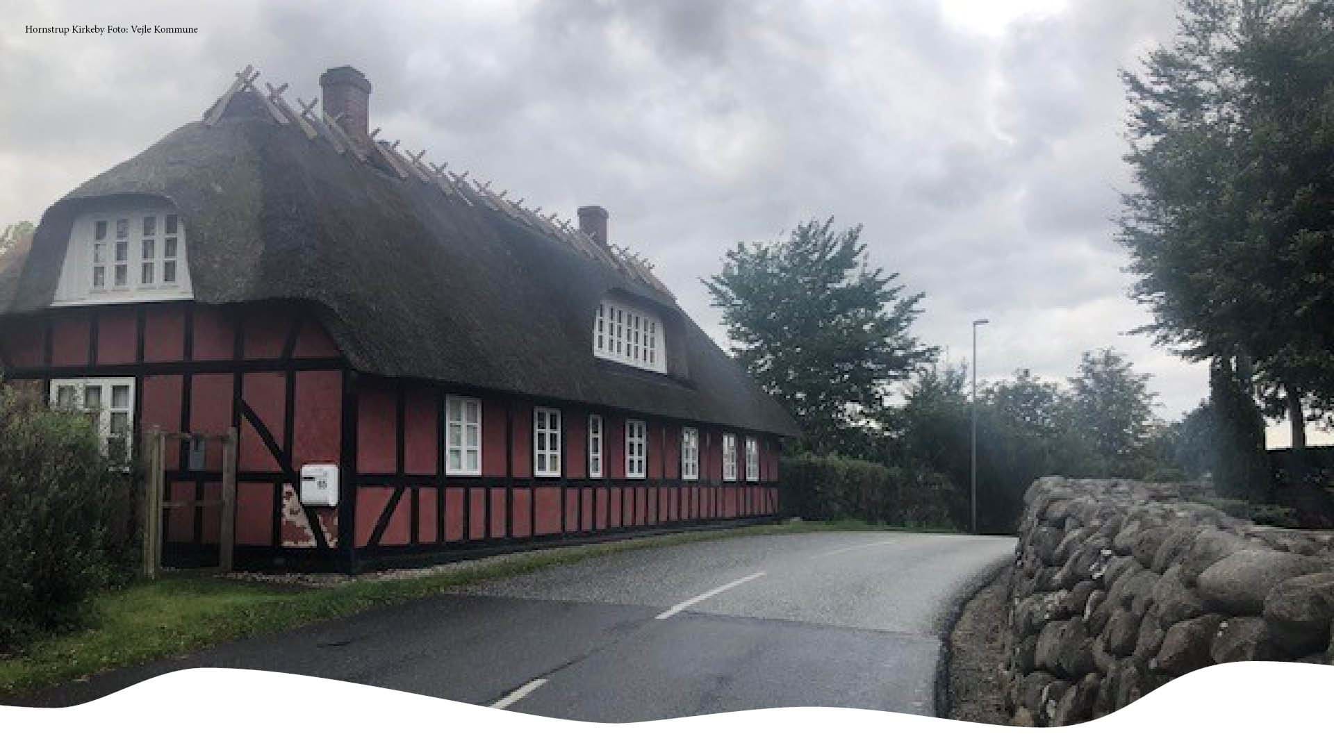 Hornstrup Kirkeby er som navnet antyder vokset op omkring Hornstrup Kirke, men måske især omkring skolen, som i dag er nedlagt og omdannet til kursuscenter. Hornstrup Kirkeby bestod indtil 70’erne kun af kirken, skolen og spredt bebyggelse. I løbet af 70’erne blev der bygget ca. 40 parcelhuse i området, og der er kommet enkelte nye huse til senere. I den østlige del af byen er der givet mulighed for en mindre udbygning. Fodboldklubben, Hornstrup Kursuscenter og sognegården medfører en del aktiviteter i byen. Der er god adgang til E45 og kort afstand til Vejle.