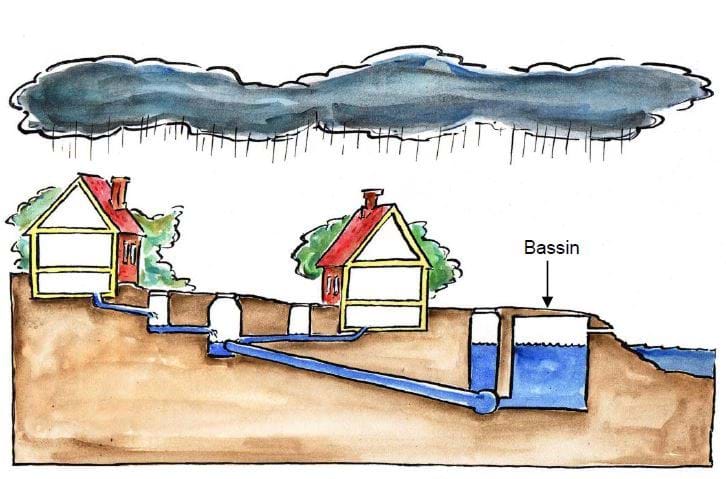 Ved nogle overløbsbygværker vil der blive etableret bassinanlæg til midlertidig opbevaring af spildevand. Det sker for at begrænse udledning af spildevand til vandløb, fjord eller hav, når afløbssystemet overbelastes under regn. Når der igen er plads i afløbssystemet, kan vandet fra bassinet ledes tilbage til kloakken.